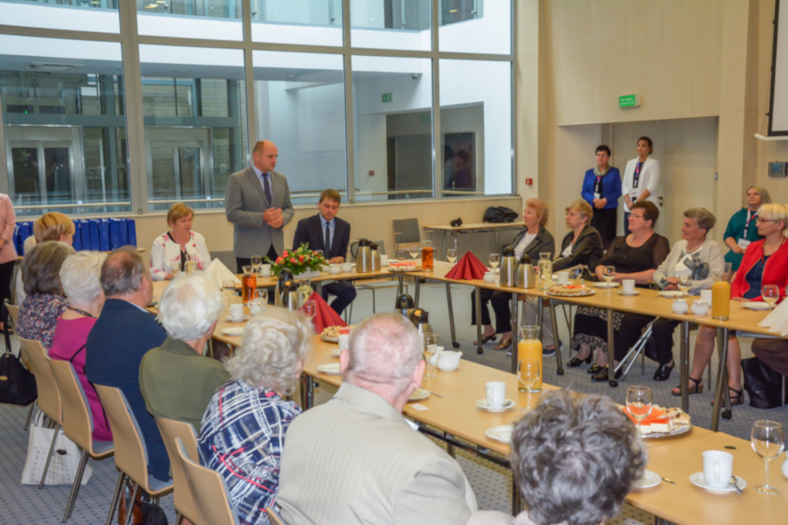 Uroczyste spotkanie marszałka z seniorami odbyło się we wtorek 3 lipca 2018 roku w Urzędzie Marszałkowskim w Toruniu. Oprócz Piotra Całbeckiego, uczestniczyli w nim także Krystyna Żejmo-Wysocka - dyrektor Departamentu Spraw Społecznych, Wdrażania Europejskiego Funduszu Społecznego i Zdrowia Urzędu Marszałkowskiego oraz Adam Szponka - dyrektor Regionalnego Ośrodka Polityki Społecznej w Toruniu.