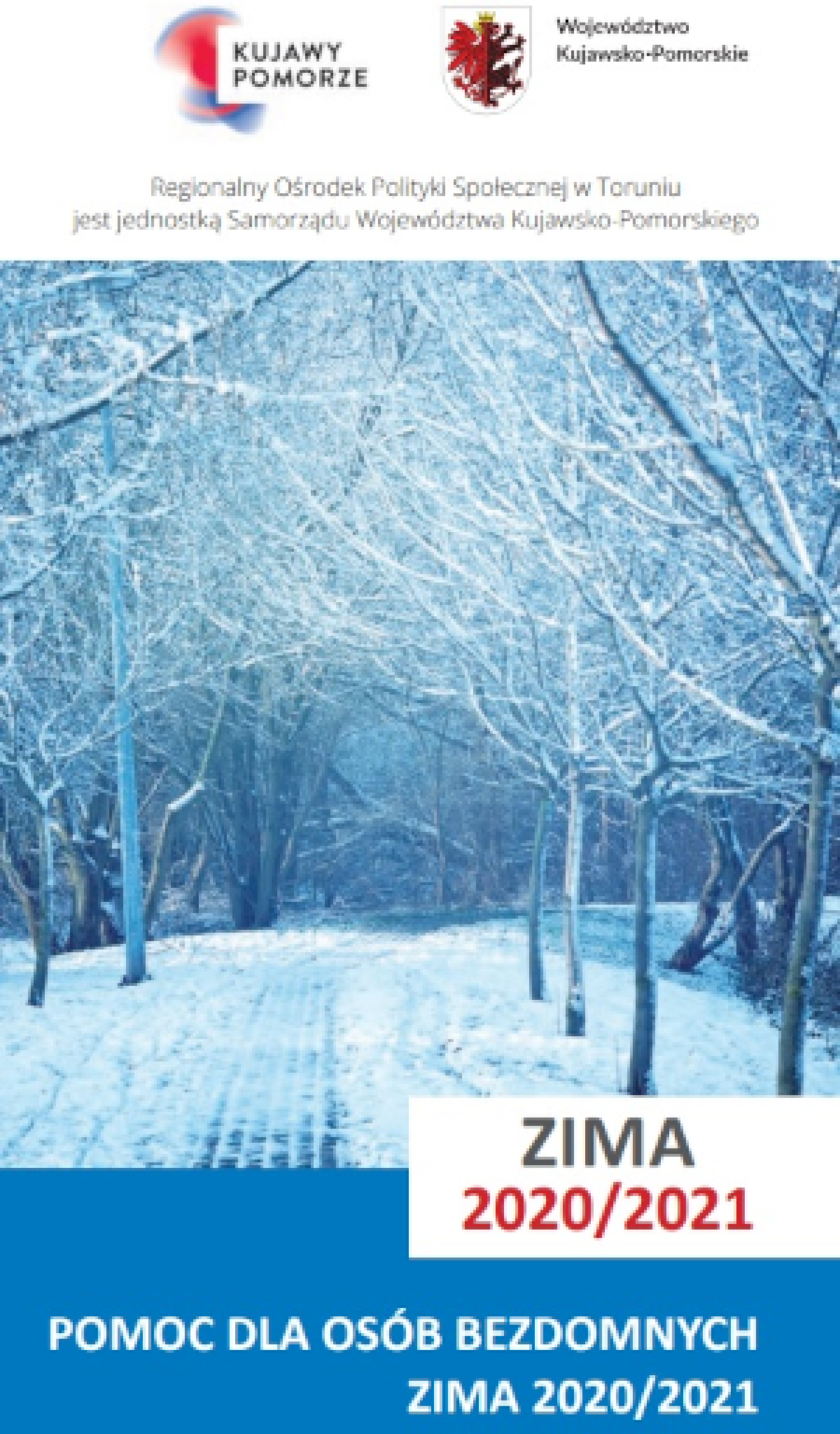 Zapraszamy do zapoznania się z materiałami opracowanymi w ramach Projektu informacyjnego na temat miejsc udzielania pomocy osobom bezdomnym w województwie kujawsko-pomorskim „Akcja Zima 2021/2022”.
