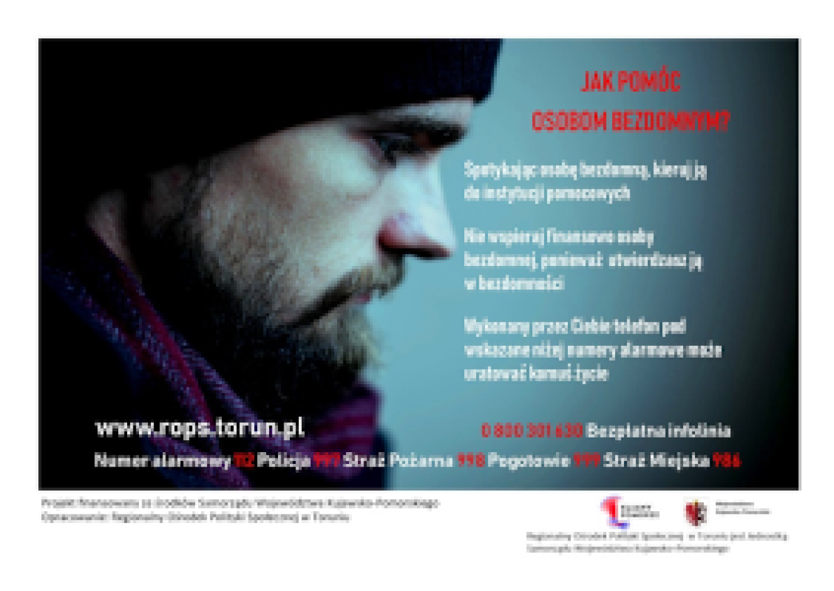 Ruszyła kampania świadomościowa „Jak mądrze pomagać osobom bezdomnym” na terenie Bydgoszczy i Torunia. Akcja przeprowadzona za pośrednictwem miejskiej komunikacji autobusowej i tramwajowej w Toruniu potrwa od 11 do 17 grudnia 2019 roku, natomiast za pośrednictwem miejskiej komunikacji autobusowej w Bydgoszczy od 11 do 25 grudnia 2019 roku.