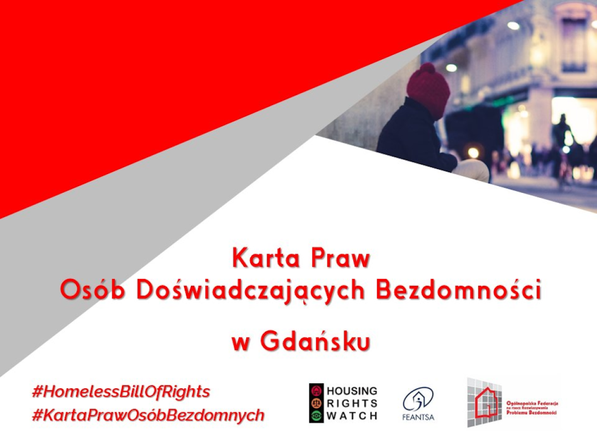 Ważną w tym kontekście inicjatywą jest powstanie Karty Praw Osób Doświadczających Bezdomności. Karta zawiera zobowiązania władz miast do przestrzegania podstawowych praw osób dotkniętych bezdomnością. Opracowały ją Housing Rights Watch oraz Europejska Federacja Organizacji Krajowych Pracujących z Osobami Bezdomnymi FEANTSA. Karta funkcjonuje już w niektórych europejskich miastach m.in. Barcelonie. Pierwszym miastem w Polsce, które przyjmuje Kartę jest Gdańsk. Miasto Gdańsk z jednej strony wdraża politykę równości w postaci Modelu na rzecz Równego Traktowania, z drugiej strony realizuje Gdański Program Rozwiązywania Problemu Bezdomności. Przyjęcie Karty jest praktycznym krokiem w kierunku zarówno zagwarantowania praw osobom w kryzysie bezdomności jak i działaniem ukierunkowanym na rozwiązanie problemu bezdomności.