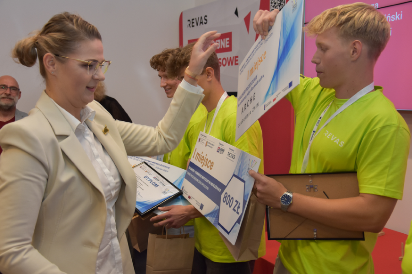Nagrody i puchary uczestnikom zmagań wręczali: Michał Neumann - Dyrektor Regionalnego Ośrodka Polityki Społecznej w Toruniu, Danuta Moskała - Zastępca Dyrektora Regionalnego Ośrodka Polityki Społecznej w Toruniu, Beata Sikorska - Kujawsko-Pomorski Wicekurator Oświaty oraz Roksana Michalczyk, dyrektor sieci Arche SA.