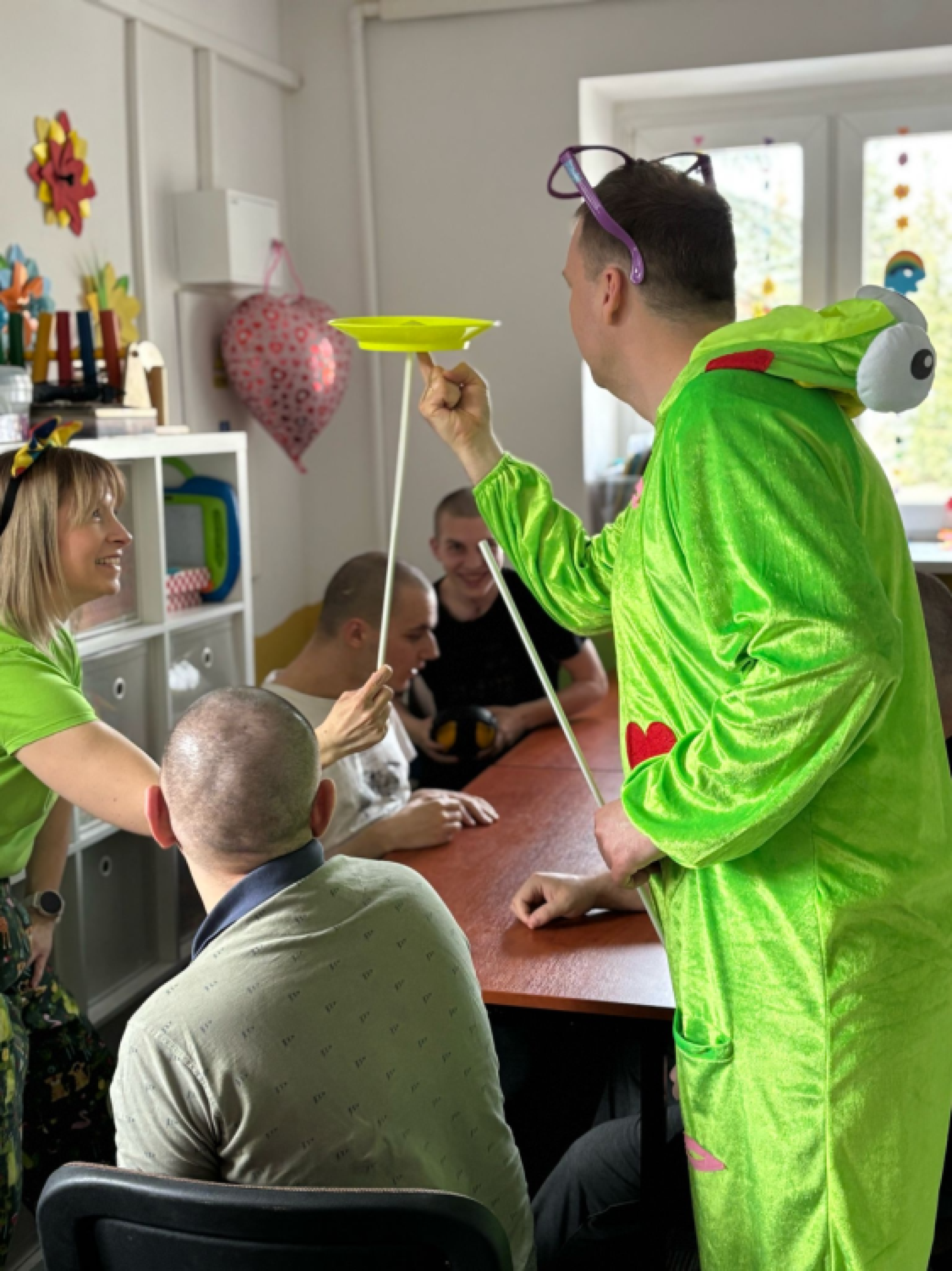 Na zakończenie, odwiedził nas w placówce Dr Clown – wspaniali klowni, którzy swoimi żartami, sztuczkami i uśmiechami rozbawili naszych podopiecznych. Ich obecność wniosła mnóstwo radości, a atmosfera pełna śmiechu z pewnością na długo pozostanie w naszej pamięci.
