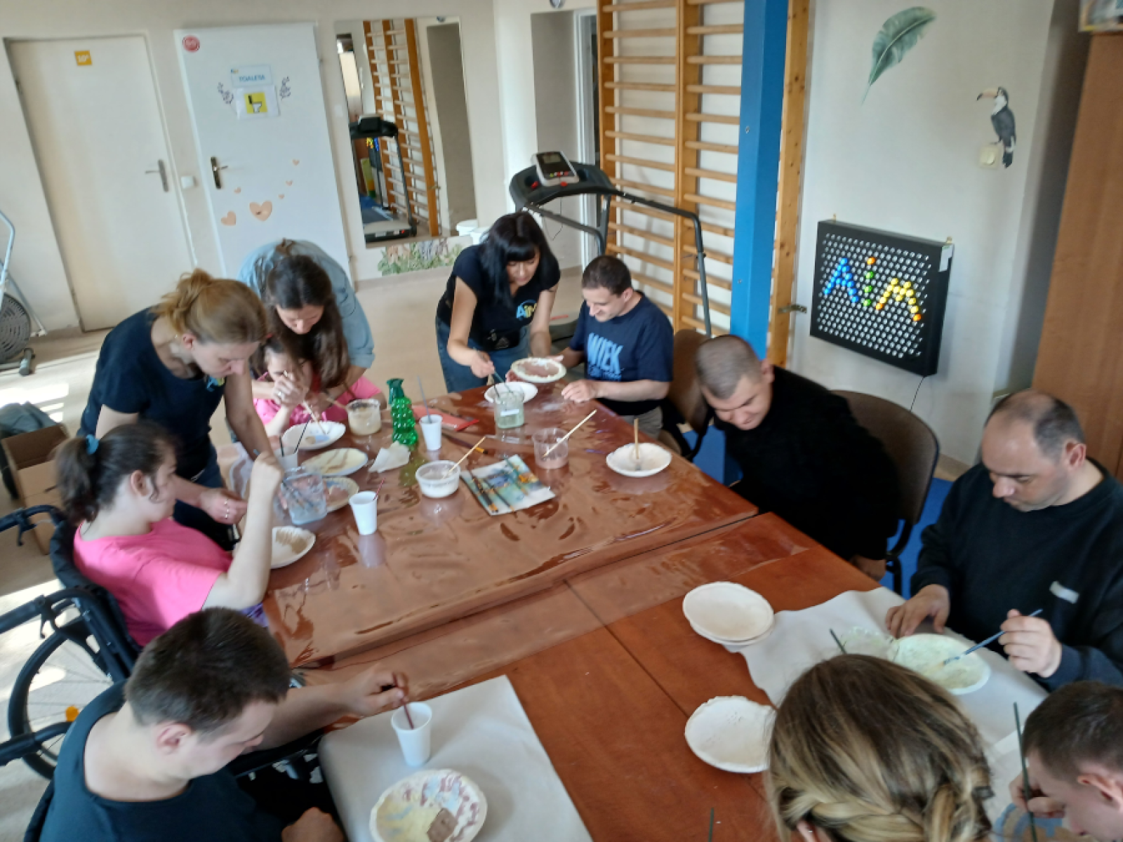Z kolei na warsztatach z lepienia gliny podopieczni mieli możliwość pomalowania przygotowanych na poprzednich zajęciach miseczek. Zajęcia pozwoliły na rozwijanie zdolności manualnych, koncentracji i kreatywności. Praca z naturalnym materiałem dostarczyła podopiecznym wielu bodźców sensorycznych, wzmocniła poczucie własnej wartości i sprawiła, że poczuli się dumni z wykonanych prac. Podopieczni z zaangażowaniem uczestniczyli w takiej formie aktywności.Dziękujemy wszystkim, którzy wzięli udział w warsztatach i wsparli nas w organizacji tych wspaniałych zajęć. Czekamy na kolejne spotkania pełne pasji i twórczości!