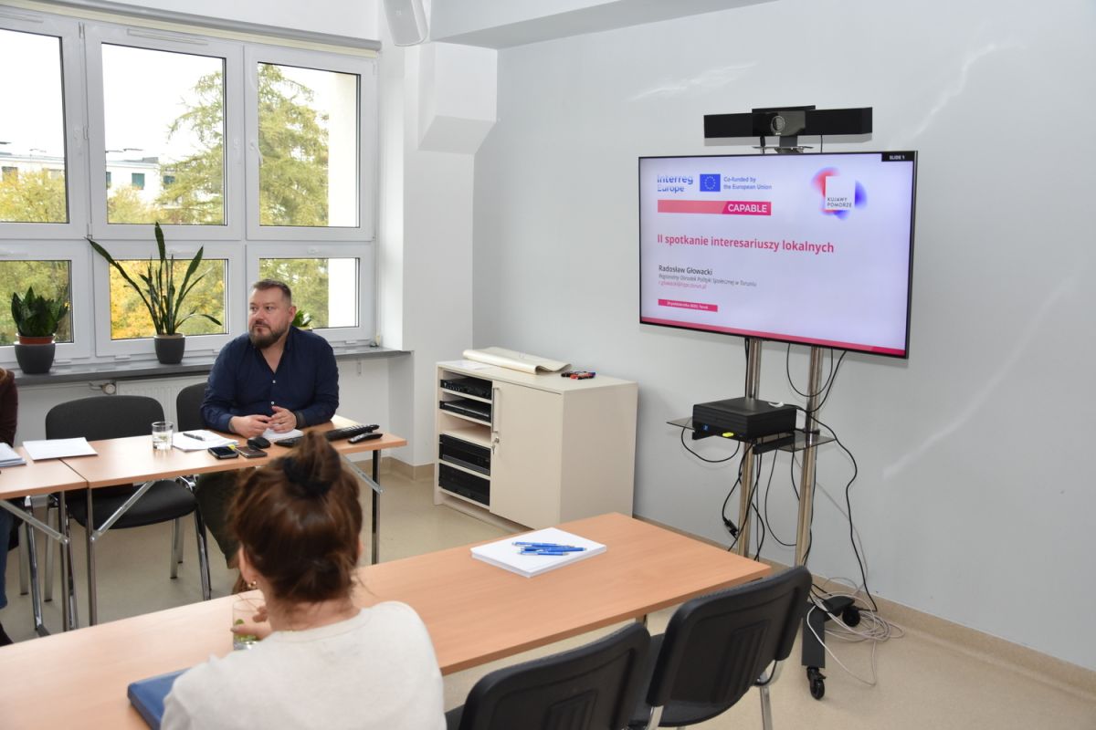 Drugie spotkanie interesariuszy lokalnych projektu CAPABLE odbyło się w dniu 29 października 2025 r. Wydarzenie rozpoczęło się od nieformalnej wymiany spostrzeżeń na temat projektu CAPABLE. W części merytorycznej zaprezentowano międzynarodowe „dobre praktyki”, czyli rozwiązania z Włoch, Niemiec, Rumunii i Ukrainy, które przedstawiono podczas pierwszej wizyty studyjnej projektu CAPABLE we Włoszech.