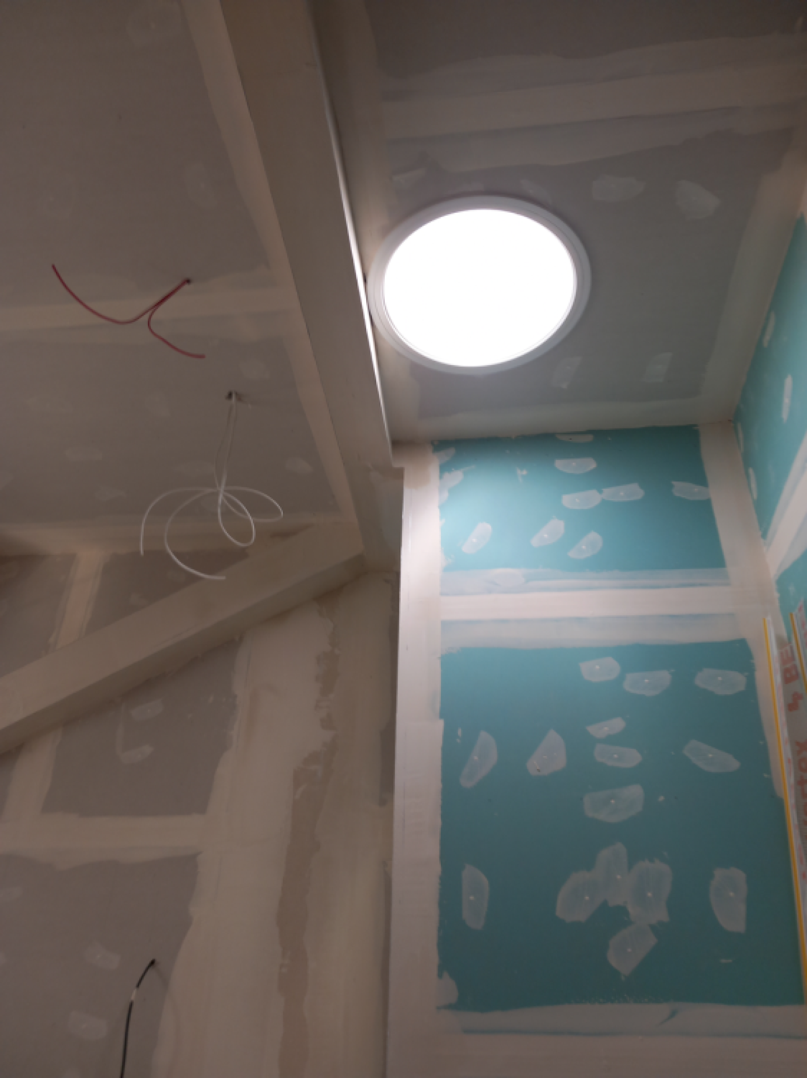 - Trwają prace związane ze szpachlowaniem oraz układaniem płytek ściennych,