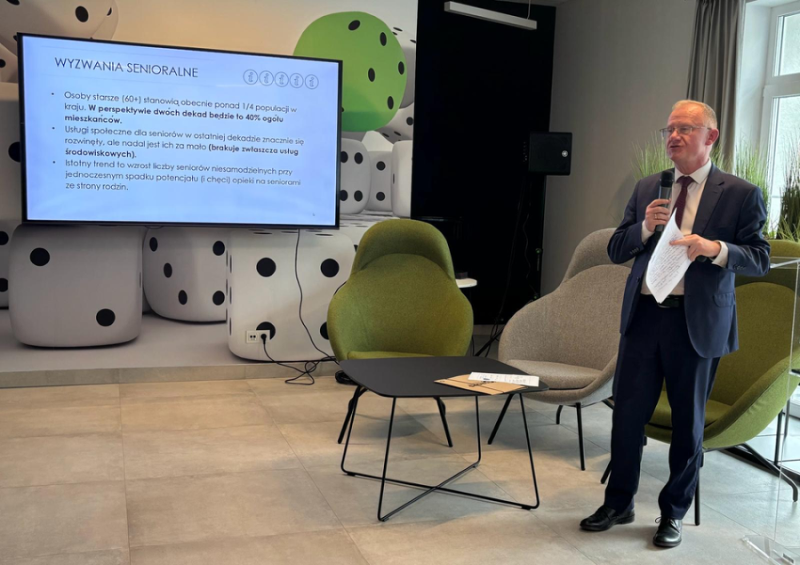 Procesy demograficzne zachodzące w naszym kraju stawiają przed nami zupełnie nowe wyzwania. Starzenie się społeczeństwa, ujemny przyrost naturalny powodują między innymi konieczność przeorganizowania systemu usług społecznych świadczonych zarówno w środowisku jak i przez placówki wparcia całodobowego. Obowiązująca Strategia rozwoju usług społecznych, polityka publiczna do roku 2030 (z perspektywą do 2035 r.) wyznacza główne kierunki zmian w tym obszarze.