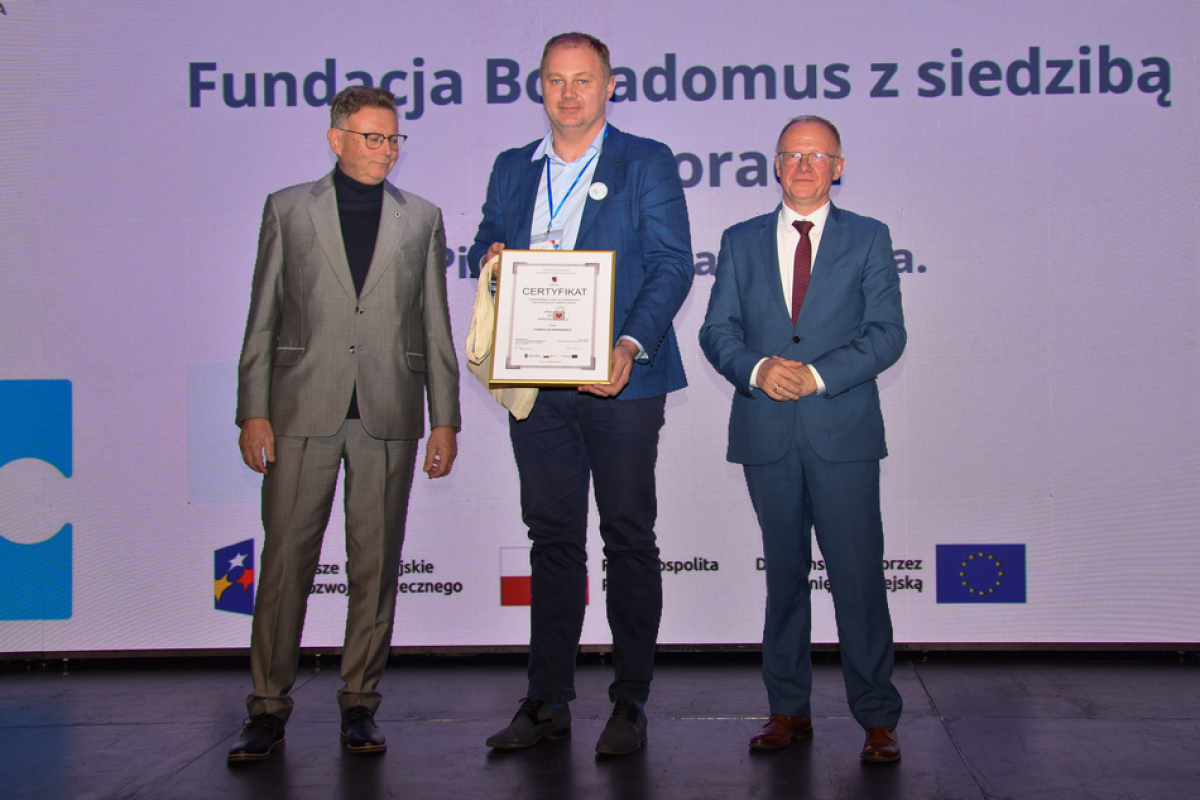 Certyfikaty to zarówno ważne elementy wsparcia, jak i docenienia najlepszych projektów. W tym roku wręczaliśmy ich 12, a każdy z podmiotów przedstawiony został w specjalnie zrealizowanym filmie. Multimediów było zresztą więcej, goście mogli na przykład zobaczyć promujący ekonomię społeczną film „Malowanie piaskiem” oraz obejrzeć galerię fotograficzną z działalności podmiotów ekonomii społecznej województwa kujawsko-pomorskiego.