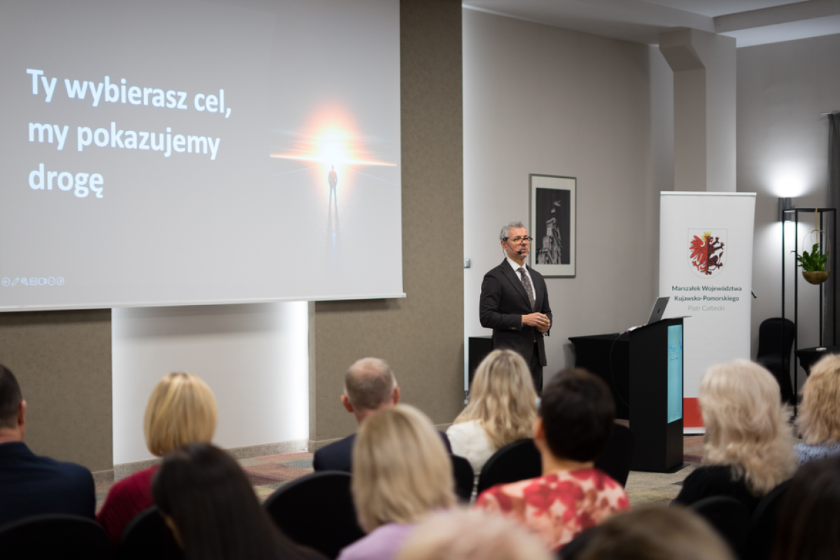 • Przedsięwzięcie realizowane jest w ramach projektu pn. „Koordynacja spójnej polityki społecznej Kujaw i Pomorza”, współfinansowanego ze środków Europejskiego Funduszu Społecznego Plus w ramach Programu Fundusze Europejskie dla Rozwoju Społecznego 2021-2027, Działanie 04.13 Wysokiej jakości system włączenia społecznego.