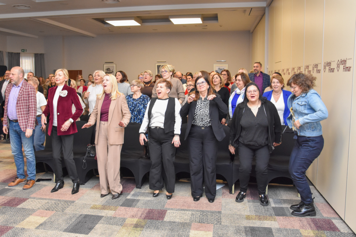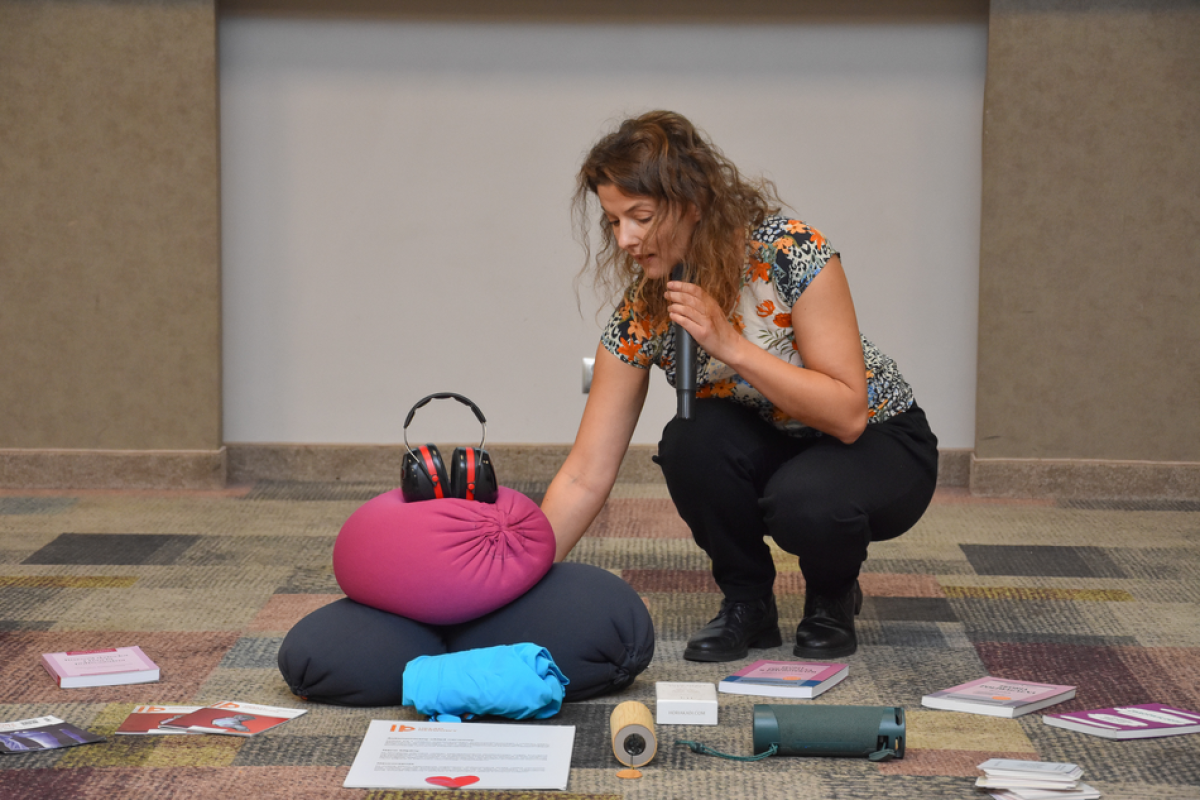 A praktyka? Izabela Chlewińska - choreografka, tancerka i pedagog –zaproponowała uczestnikom Forum składający się z prostych ćwiczeń praktyczny trening redukcji stresu. A uczestnicy bardzo się w niego zaangażowali.
