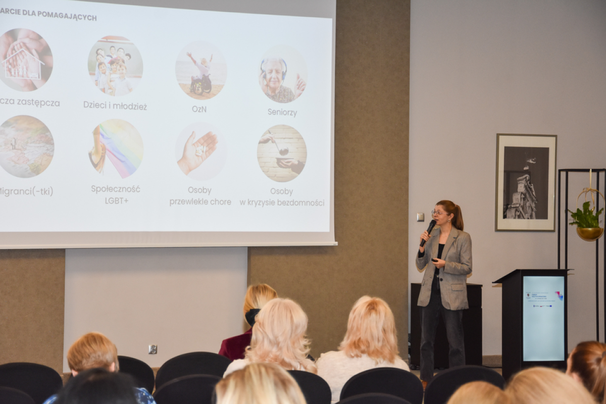O praktyce działania, jeśli chodzi o dobrostan kadry, mówiła też Zuzanna Ostrowska z poznańskiego ROPS. Przypomnijmy, że niedawno wizytę u nas złożyli przedstawiciele wielkopolskiej pomocy społecznej, żeby z kolei poznać nasze „dobre praktyki”. Dr Joanna Lizut prorektorka Uczelni Korczaka, opisała z kolei zarówno status quo stanu środowiska pracowników pomocy społecznej, jak i kierunki działań mogące poszerzyć i zatrzymać kadrę - na ogólnym tle trendów na rynku zatrudnienia.