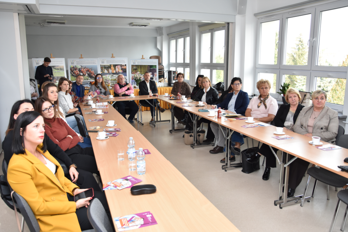 Goście z Wielkopolski - przedstawiciele gmin, kadry instytucji wchodzących w skład regionalnego systemu polityki społecznej, członkowie rad seniorów oraz przedstawiciele organizacji pozarządowych - zjawili się u nas 5 listopada. Reprezentowali różne miejscowości, nie tylko Poznań, ale również na przykład Oborniki czy Turek. Głównym celem spotkania było zapoznanie uczestników z funkcjonowaniem instytucji wspierających osoby starsze i ich opiekunów - poprzez zaprezentowanie skutecznych, praktycznych rozwiązań, stosowanych w naszym województwie.